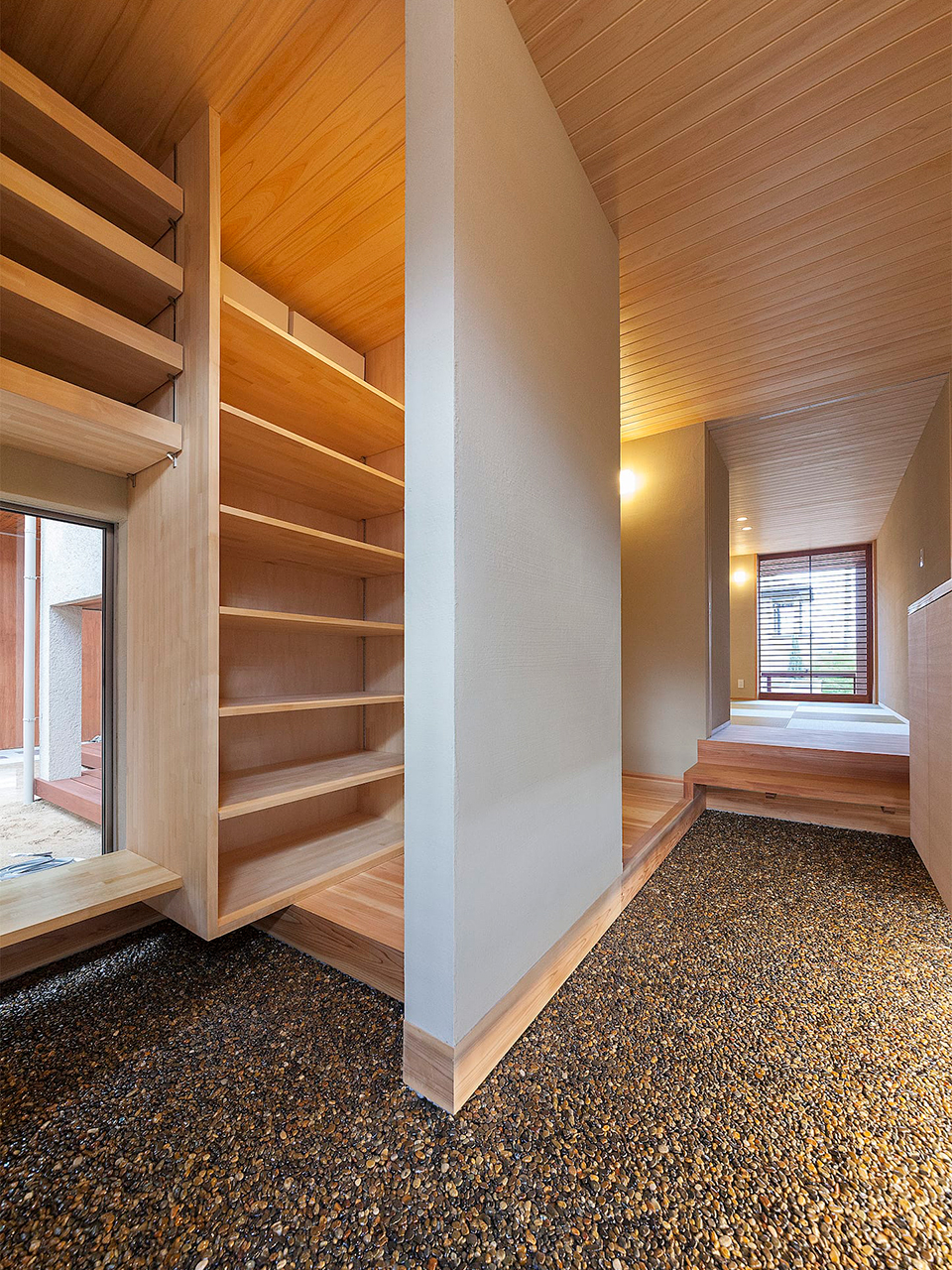 豆砂利洗い出し仕上げの玄関土間! 2018 年 9 月 9 日 姫路市香寺町D邸 works土間玄関 豆砂利洗い出し仕上げの玄関土間です! Works:丘陵地に建つ和風住宅 兵庫県姫路市でシンプルモダンや和モダンの住宅設計を行う一級建築士設計事務所 永森建築事務所ブログ 建築家 永森 靖二 http://www.ynagamo.com/blog/