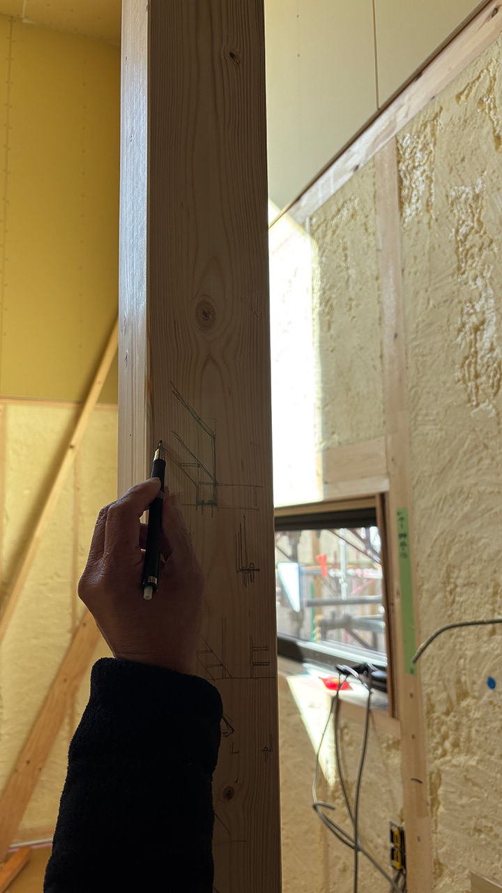 現場が進んでくると、空間を見てから気持ちが変わる事ももちろん出てくる時があり、現場でいろんなアイデアを出しながら、お施主様と現場監督と擦り合わせをしながら進めています。