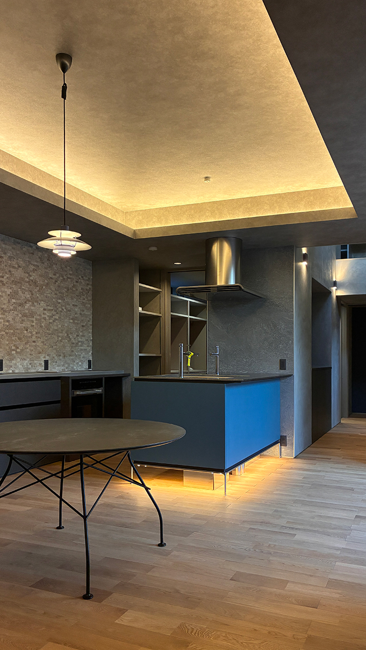 キッチンの下にも間接照明があり、シーンによって使い分けれるリビングライコンが大活躍できそうです。